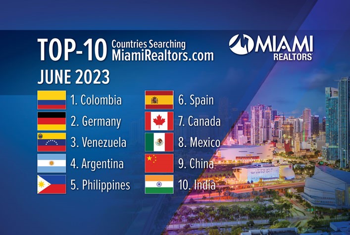 Los 10 principales países que buscan en MiamiRealtors.com en junio de 2023: