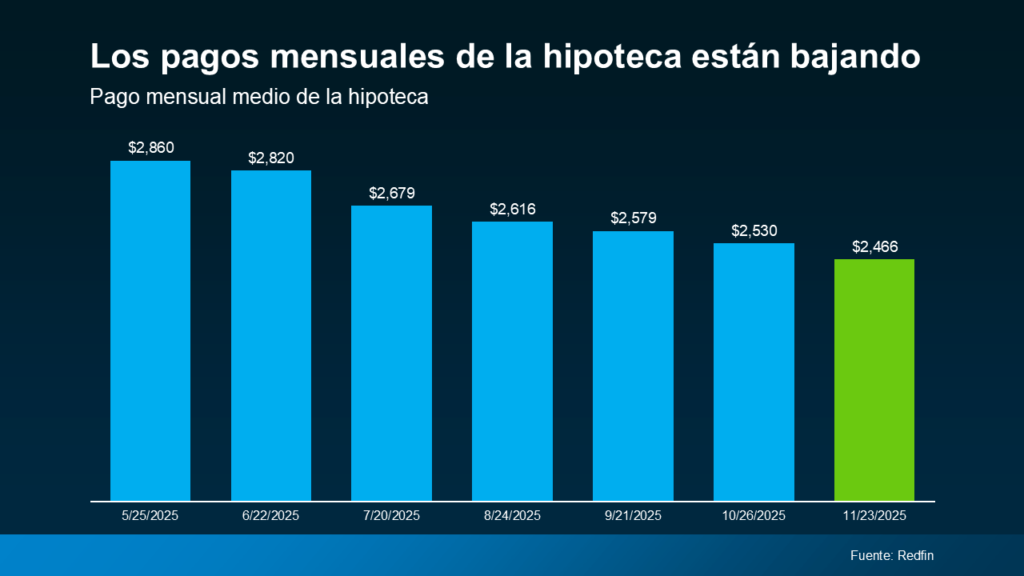 Eso suma a un pago mensual de la hipoteca que es cientos de dólares menor que hace apenas unos meses (ver la gráfica abajo):