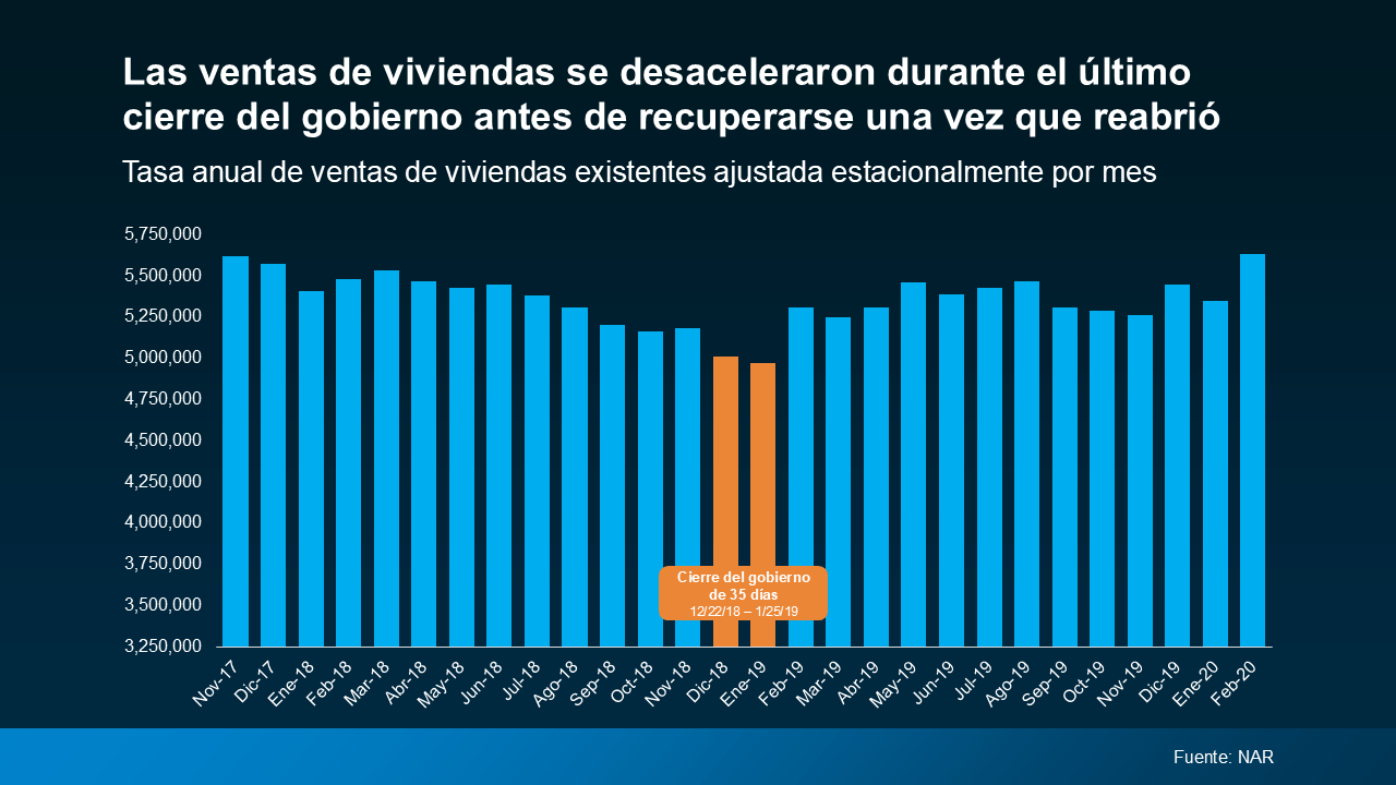 Un cierre del gobierno puede causar retrasos a corto plazo para algunos compradores, pero no descarrila el mercado de la vivienda. La última vez que esto sucedió, las ventas se recuperaron tan pronto como el gobierno reabrió.