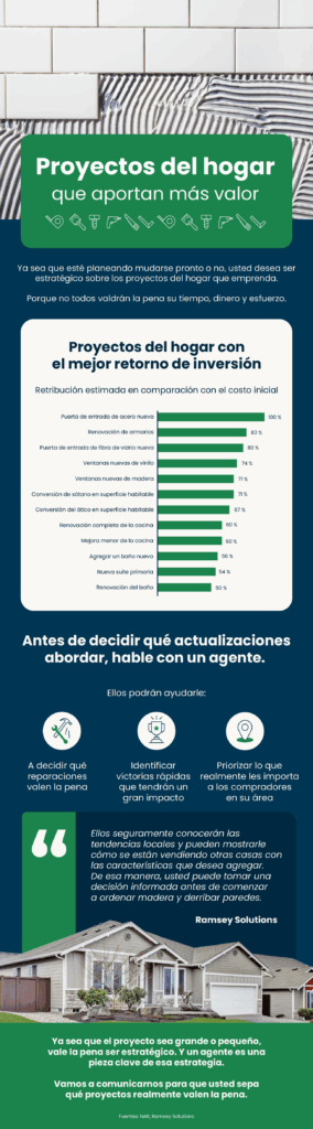 Ya sea que esté planeando mudarse pronto o no, usted desea ser estratégico sobre qué proyectos del hogar emprender. Porque no todos merecerán la pena.
