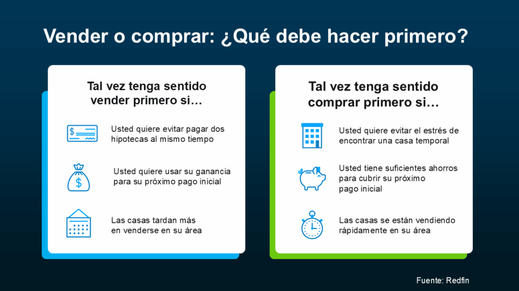 - ¿O debería vender su casa actual antes de salir a buscar otra?